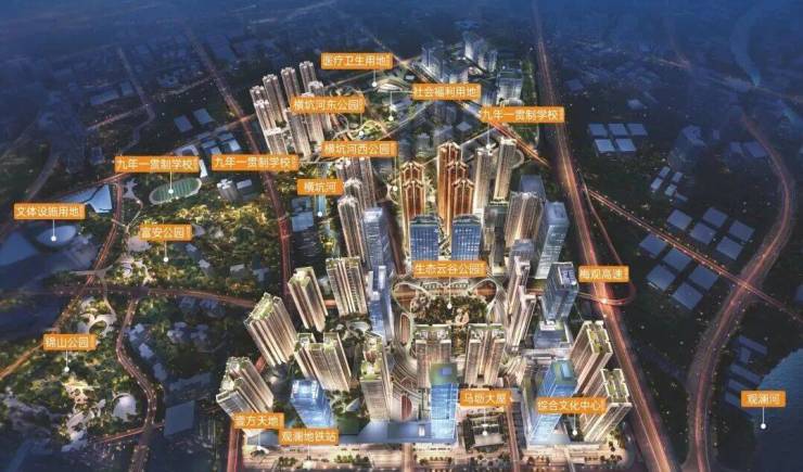 【鸿荣源观城】规划面积16.96平方公里,观澜湖,版画村,观澜古墟,牛湖水、观澜河两条水系交汇,打造深圳文化地标和国际数字文化示范小镇。