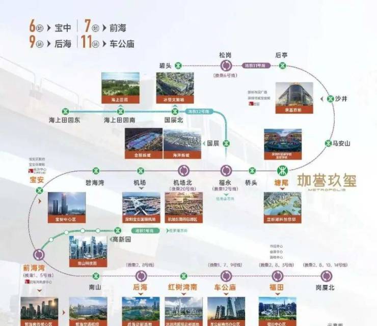 交通配套:家门口即11号线塘尾站,6站宝中,7站前海,9站后海,11站车公庙,便捷通达南山、福田核心片区。