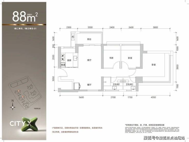 88㎡三房两厅两卫 (双娃家庭置业首选)