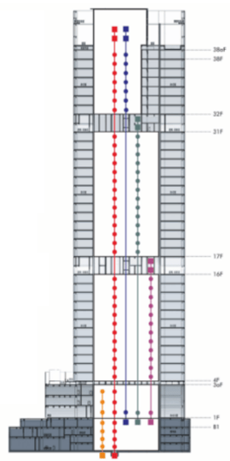 18部进口瑞士迅达电梯、梯速可达6m/s,平均等候时间不超过30s;