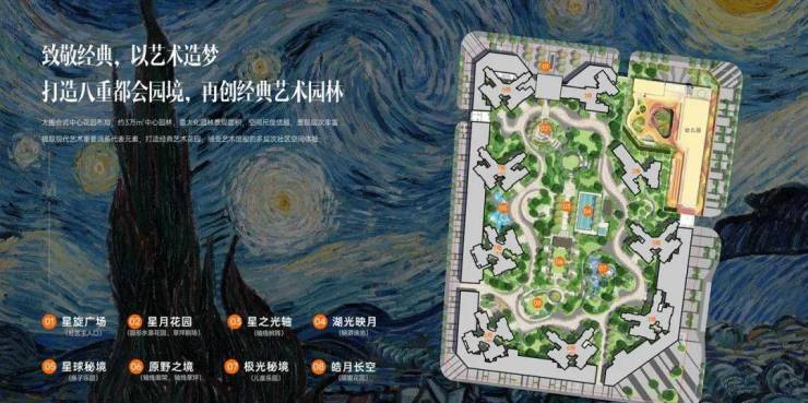 秉承“誉”系品质,打造“星空花园”主题大园林,约3万㎡围合式园林,约等于4.2个标准足球场大小,绕小区园林跑步一圈都有约1公里,源于梵高《星月夜》为灵感的“八重都会园境”,让您和公园只有一部电梯的距离,配备全龄泳池,两大儿童主题空间,构建全龄景观配套。