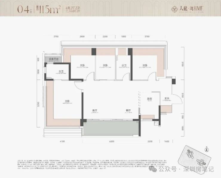 04户型 115㎡四房:727-892万(大横厅南北通)