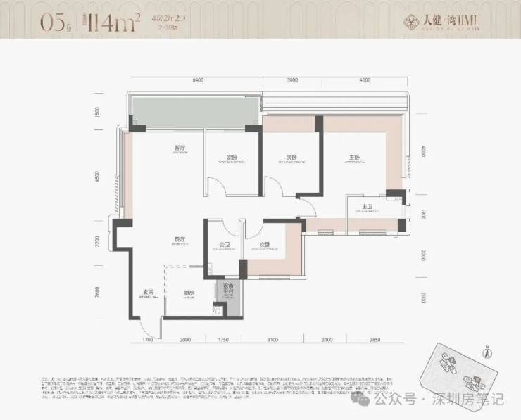 114㎡四房两卫设计独特,客厅270°采光观景,远眺山景,视野非常好。这个户型很安静,适合对采光和视野有要求的家庭。