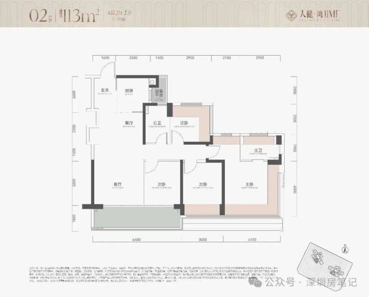 113㎡四房两卫是入门首选,采用竖厅设计,南北通透,6.4米宽大阳台连接客厅与次卧。户型动静分区明确,主卧带独立卫浴和飘窗,实际使用面积接近120㎡,空间利用率极高。这个户型4开间朝南,南向面海,是上车门槛最低的户型。