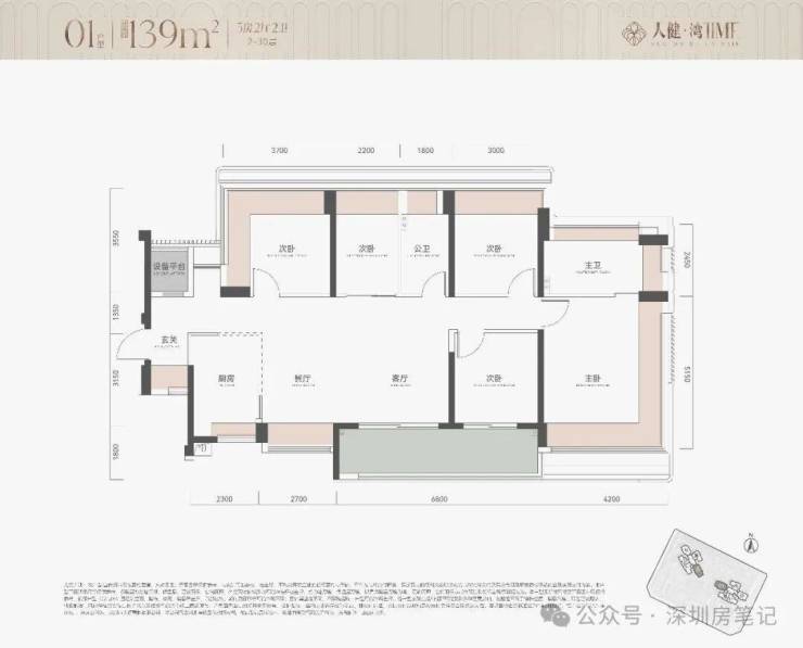 01户型 139㎡五房:943-1148万(南北通无敌海景)