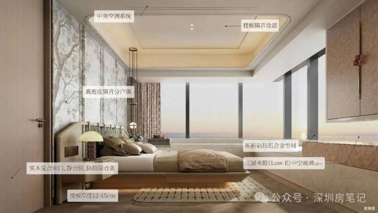 配有多重静音体系,门、窗、楼板、墙体都做了隔音处理,有效降音降噪,隔壁娃在家蹦跳也听不到半点吵。