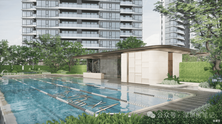 园林方面,项目打造的是度假风社区。约1.2万㎡的园林空间里,有双泳池配置,其中一个约25m2.5m4标准泳道,在家门口就能游泳健身,不用专门跑外面的健身房。还有健身房、瑜伽室、全龄书吧等多元空间,适合长者的茶室、孩子的乐园、书迷的小角落、运动达人的主场。