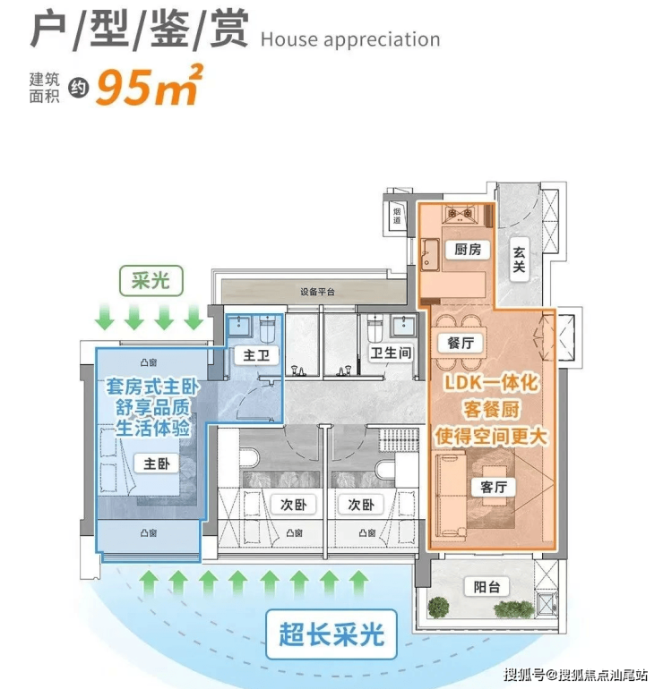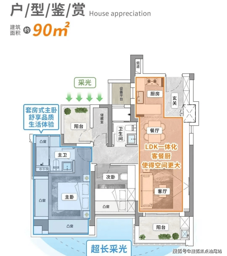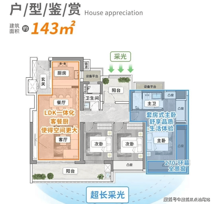 特点:270°公园景观,7.6米阳台+北向书房+设备平台,空间利用率极致