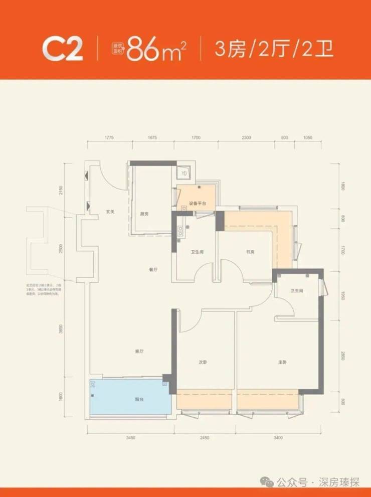 87㎡的3房2厅2卫,折后总价191-205万/套,单价2.21-2.35万/㎡。