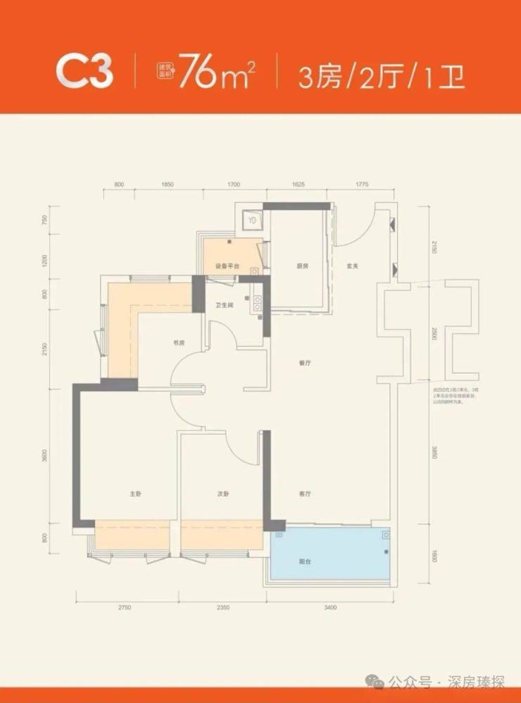 76㎡的3房2厅1卫,折后总价166-173万/套,单价2.2-2.32万/㎡。
