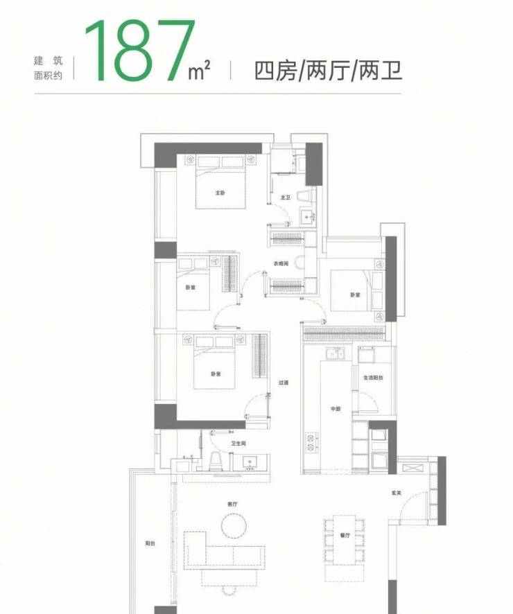 110㎡三房:经典竖厅设计,动静分明,保障隐私。卧室标配飘窗,观景阳台展开风景画卷。餐客一体化设计,连通阳台,畅享全家欢聚时刻。主卧私享化设计,配备独立卫浴和衣帽间,为居民提供私密、舒适的居住体验。