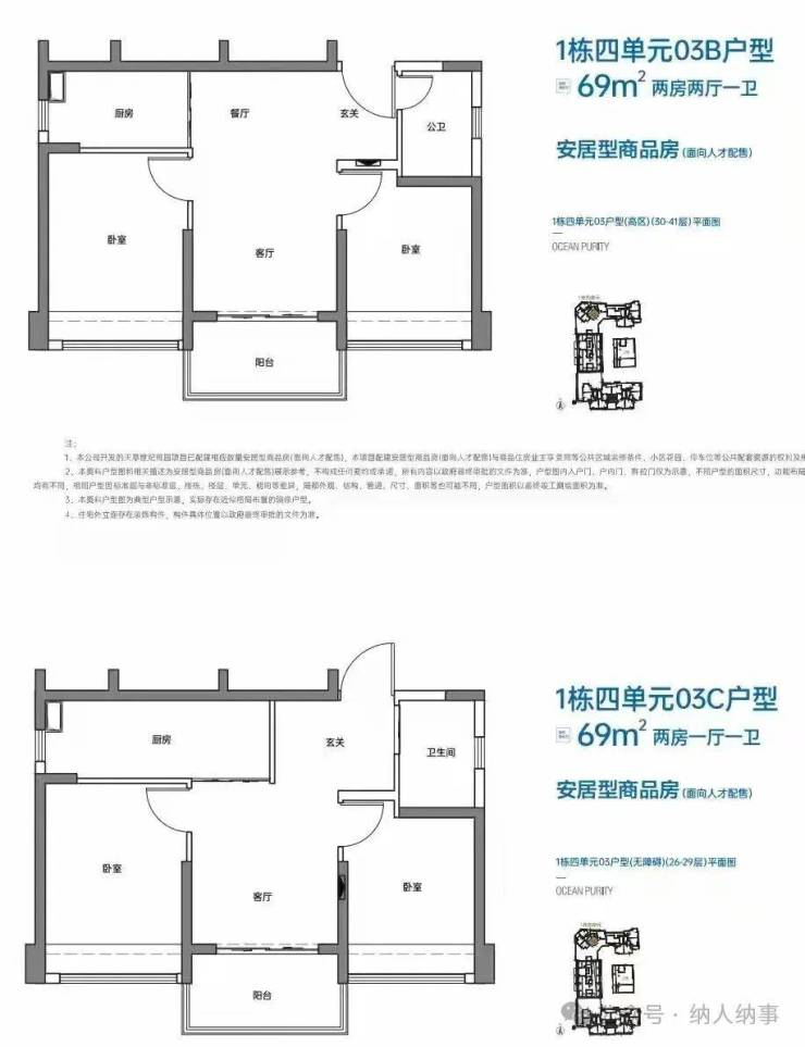 天萃的两房户型有四个,很奇怪的是,都没有标具体的尺寸,这在人才房中可极少见。是故意为之,还是疏忽了呢?