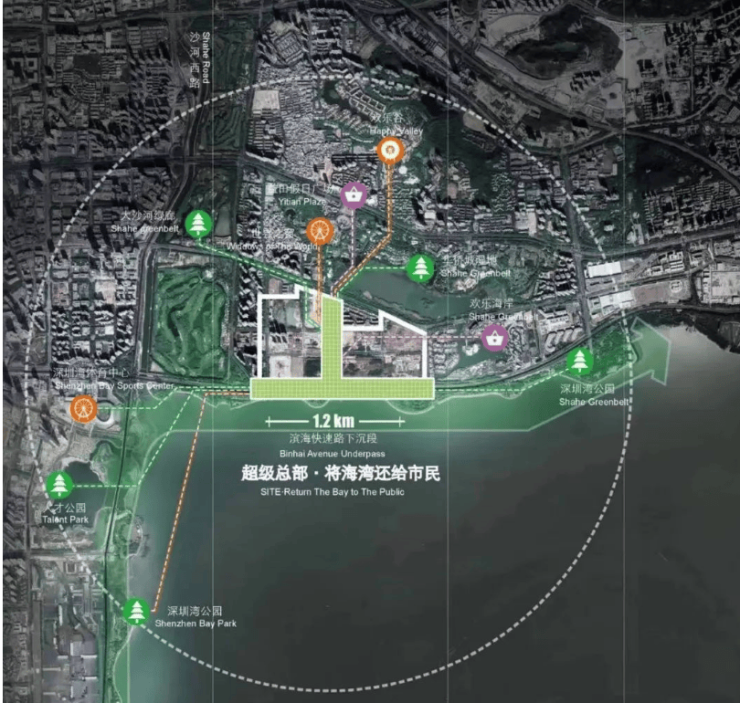 该区域连接周边街区的文化设施,将超级总部及周边的文化创意功能引入公园,为深圳和全球的创意群体服务。