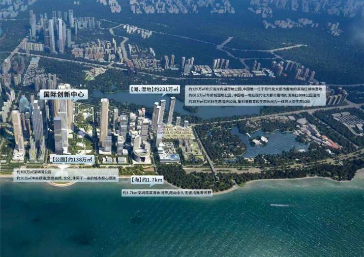 深超总基于“总部+生态+文化”三大主题,通过加强其功能的复合性、景观的优越性和交通的系统性,着力构建集全球总部聚集区、都会文化高地、国际交流中心、世界级滨海客厅为一体的未来城市典范。