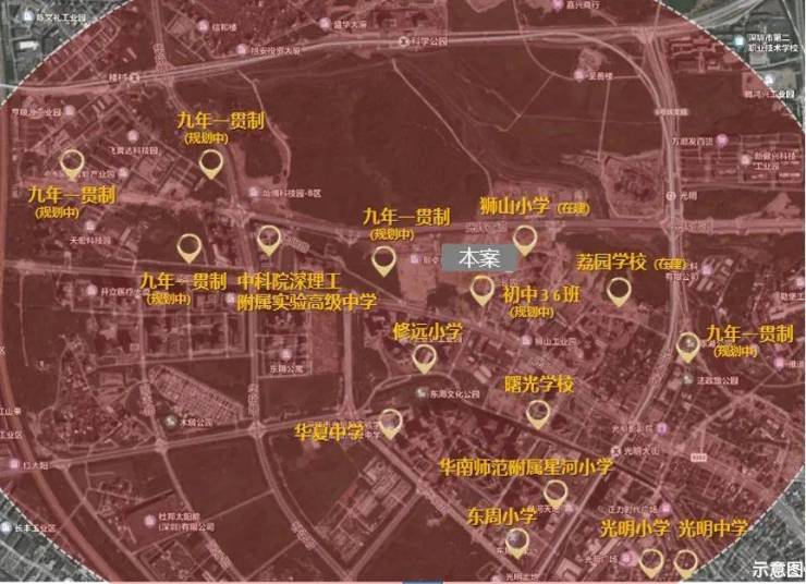 优质初中:项目南侧规划一所初中(深圳小学光明学校初中校区)、光明中学、华夏中学等