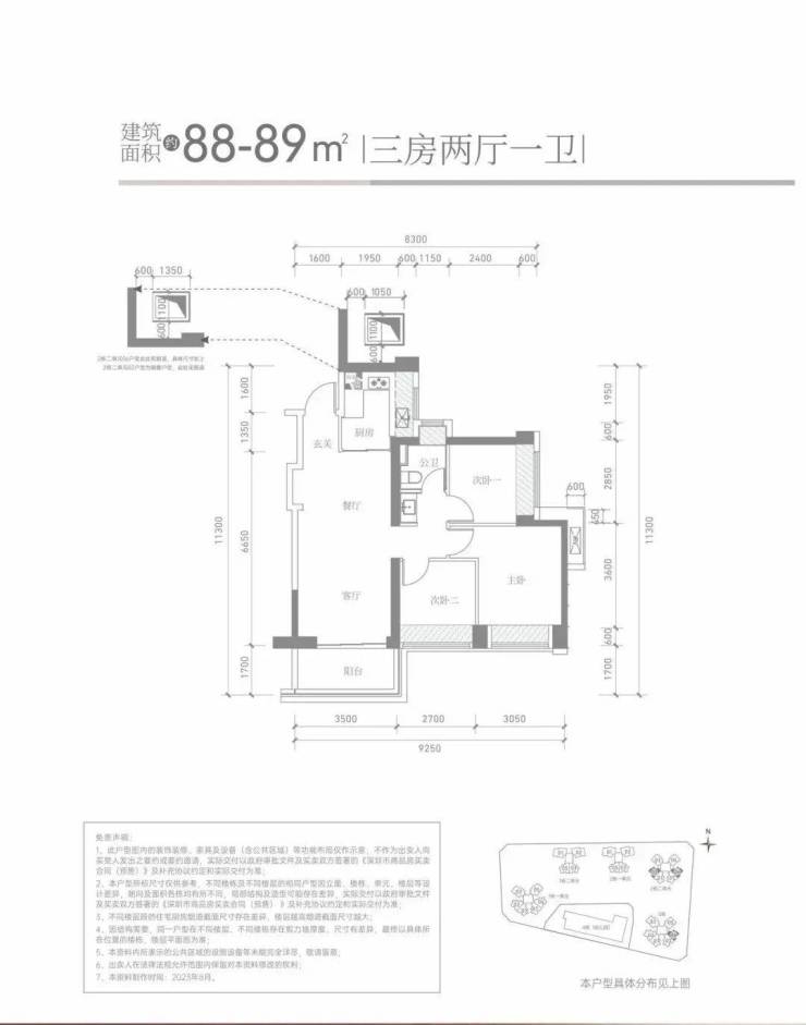 【产品户型】:建筑面积约85-88m²三房两卫、建筑面积约110-114m²四房两卫、建筑面积约113-119㎡四房两卫