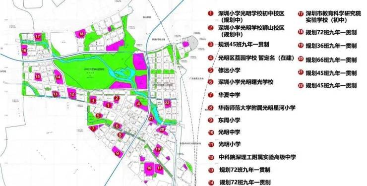 九年一贯制:中山大学深圳附属学校、光明区荔园学校(在建)、深圳市教育科学研究院实验学校、深圳实验光明学校、中科院深理工附属实验高级中学等