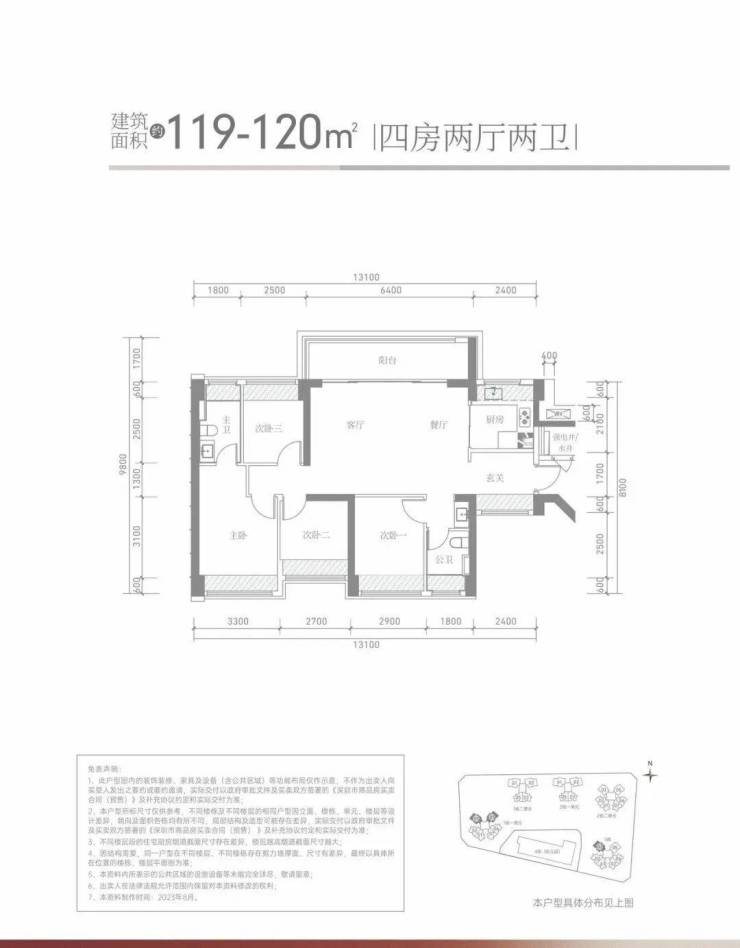 120-139㎡的四房两卫:南北通透的横厅设计,配有宽景阳台,空间宽敞明亮。