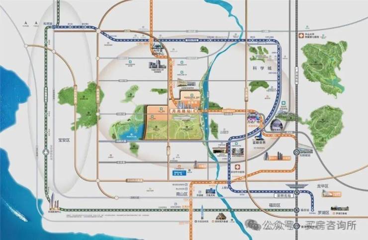 而润宏城作为13号线(在建)的地铁上盖大城,沿线又串联光明城站、西丽站两大枢纽,不仅能快速通勤南山,还能便捷联通福田、宝安、龙华等各大中心,轨道通达能力很强。