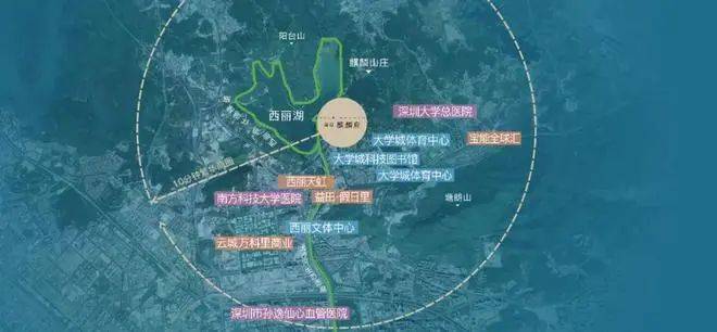 三山环抱,一湖为邻,千万顷珍稀原生资源,造就一席湖山大境;西丽湖环湖栈道+大沙河生态走廊+深圳湾环湖栈道,汇聚城市自然资源标地。