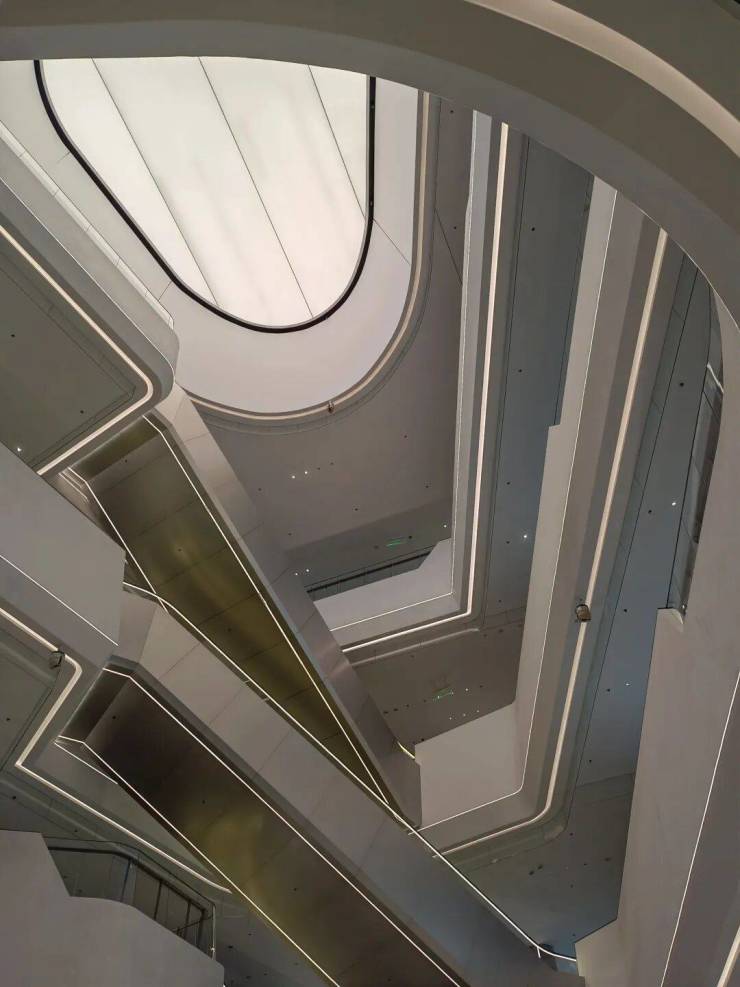 我心中的“白月光”之二,便是座落在华侨城的汉京中心。我本人与汉京集团没有任何瓜葛,只是路过,职业病发作,于是进去一探究竟。磅礴大气、筋肉分明的整体建筑型体;通透立体、阳刚帅气的大堂;精细的室内施工工艺,都令人一眼难忘。很可惜我无法进入到办公区,在连接外置核心筒与办公区的空中走廊上欣赏它的结构之美。在90年代的美国,Thom Mayne 的 Morphsis 设计事务所刚刚登上各大建筑期刊,可那是充满争议的出名。他的作品常给人一种“反建筑的”、“未完成的”、“无围合的”、甚至是”支离破碎“ 的状态;出其不意,但又会引人深思其建筑及空间的意义。学生时代的我并不太喜欢他的”离经叛道“,但记得他大多早期出彩的作品都在洛杉矶,真正实地参观过的第一个项目是旧金山的联邦大楼。他早期的作品都一个重要标签,就是把建筑的名字或地址无限放大,放到立面很显眼的位置。2005年他获得普利兹克建筑奖。看他近期的照片,似乎跟乔布斯或Phillip Johnson (另一位美国建筑师) 有点神似。