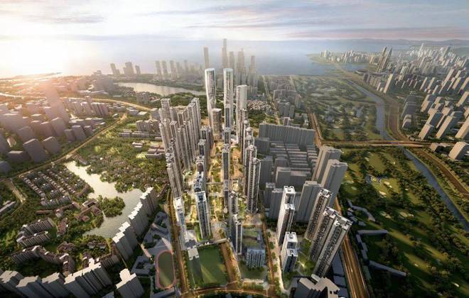 据了解,绿景白石洲项目规划总规模约500万㎡,分四期建设,汇聚商业、办公、酒店、文旅、居住等多种业态于一体。项目规划有超40万㎡商业,约1.1公里中央绿轴由南至北串联各业态;规划有4所幼儿园、3所九年一贯制学校以及约9万m²社康、文体等配套设施。