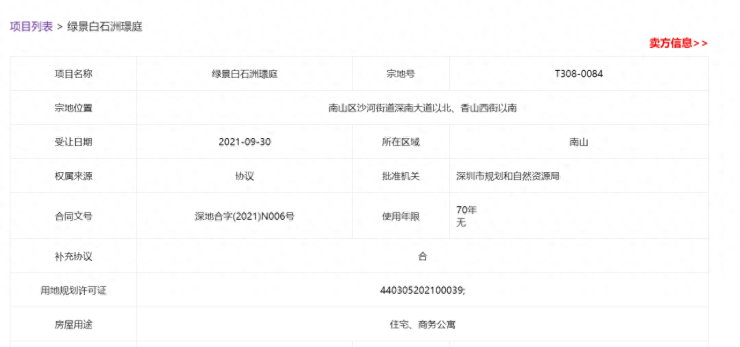 绿景白石洲璟庭项目基础信息: