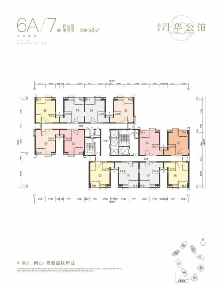 丹华公馆目前在售的户型面积为58-101㎡,包括1室1厅1卫、2室2厅2卫和3室2厅2卫等。