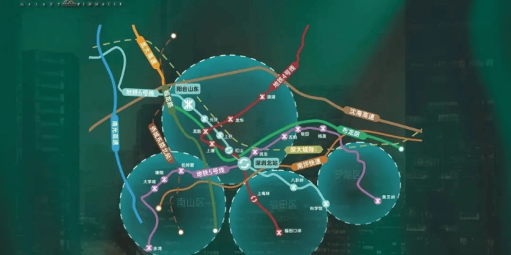 星河星悦云邸占据深圳城市发展中轴的核心战略位置,位于深圳地理几何中心,同时受到北站CBD和福田CBD的双重辐射。在深圳“数字龙华,都会核心”的规划蓝图中,龙华中心区被定位为湾区中轴核心,与南山-前海中心、福田-罗湖中心并列三大都市核心区。政府拟投入约3700亿元打造千亿级大湾区中轴核心,随着发展规划一路向北推进,继北站、红山之后,大浪即将成为下一个价值爆发点。