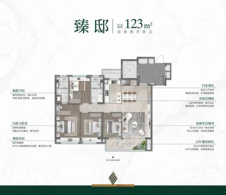 约123㎡全能四房,无论是2人世界还是5口之家,完美适配全生命周期,四开间朝南向,超大采光面!想起观萃的125㎡去年也是一房难求!这次更是升级了环幕视野阳台,关注的朋友们一定要早定下手。