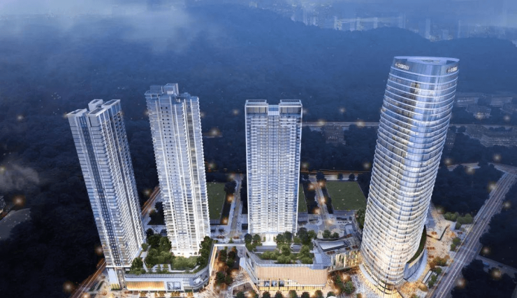 综合体主要由3栋住宅、1栋写字楼+酒店,以及约4.6万㎡购物中心构成。