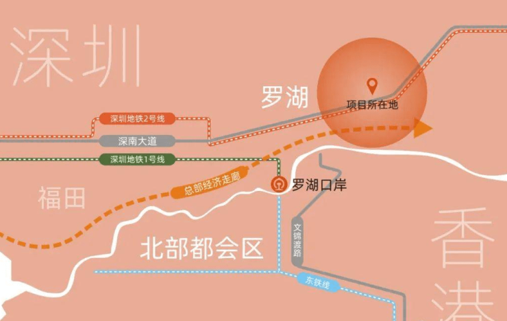 罗湖位于深港互动圈前沿,邻近香港“北部都会区”,引入香港东铁,实施“一地两检”,打造深圳火车站-罗湖口岸片区,罗湖将成为深港轨道中枢。项目近邻罗湖口岸,与香港高效通勤,坐享深港都市圈发展红利。