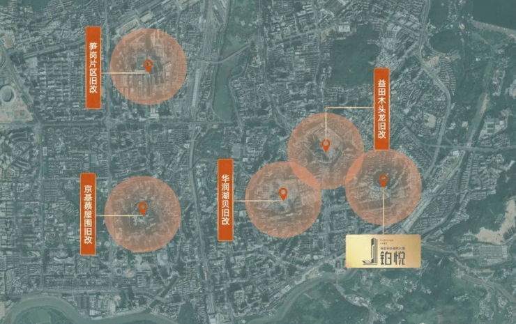 四大旧改环伺项目周边,涵盖华润湖贝旧改、益田木头龙旧改、京基蔡屋围旧改、清水河-笋岗片区旧改,总建面约908万㎡,百万新增商业焕新片区繁荣,入主深业东岭·铂悦,抢滩湾区价值新高地。