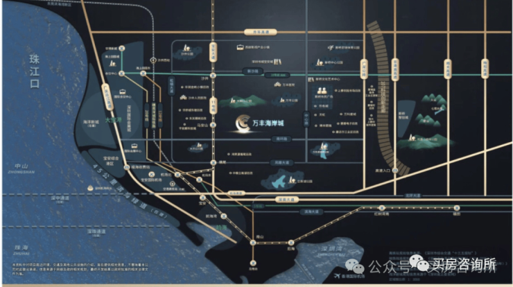 项目总建面约500万㎡,属于万丰区域城市更新项目,由深圳海岸集团和万丰股份合作开发,集住宅、商业、产业、写字楼、酒店、教育、文化休闲、生态公园、地铁等于一体。分为A/B/C三个大区进行整体开发,并延续南山海岸城的经典设计,预留与周边地铁及其他待建地块的连接规划。