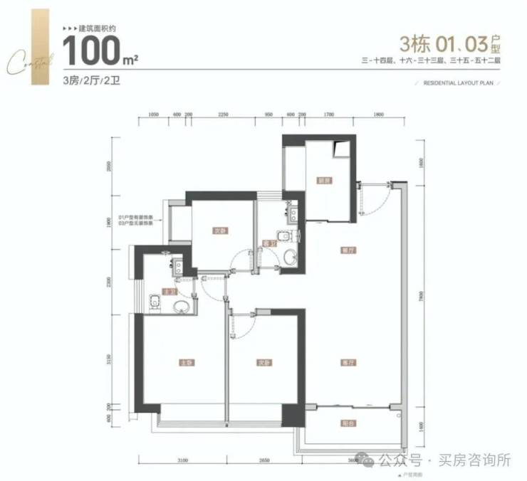 93平作为本次最高使用率的户型,做到极致四房,使用率约104%,在当下深圳的新房市场极为少见。