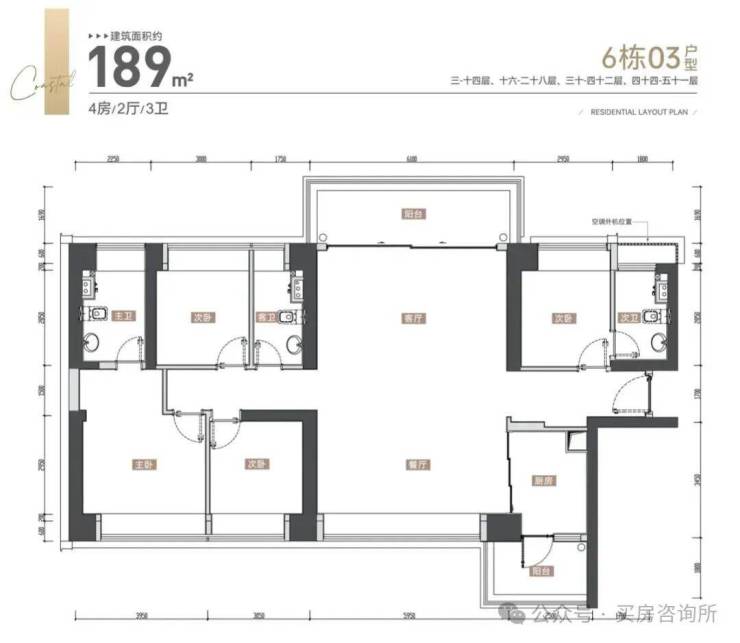超16米东南采光面,阳台超7米宽;主卧进深4.5米,L型飘窗可270度景观。