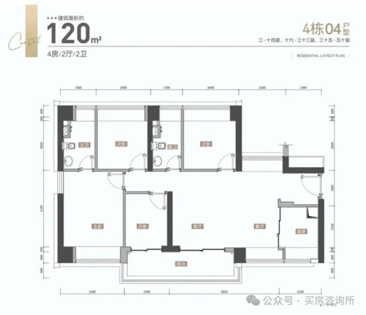 还是少有的四开间朝南,约11.7米采光面,仅40套左右!