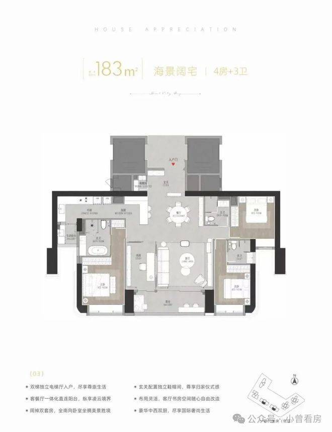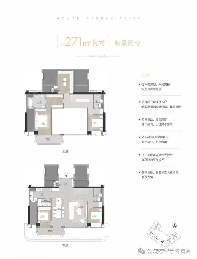 【层高】都在3m以上,大户型层高达到3.3-3.5m