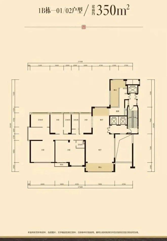 350平 5房2厅6卫 东南向