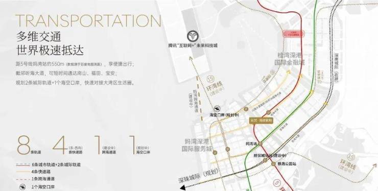 距5号线妈湾站约550m,毗邻听海大道,可快速通达南山、福田、宝安及大湾区生活圈;