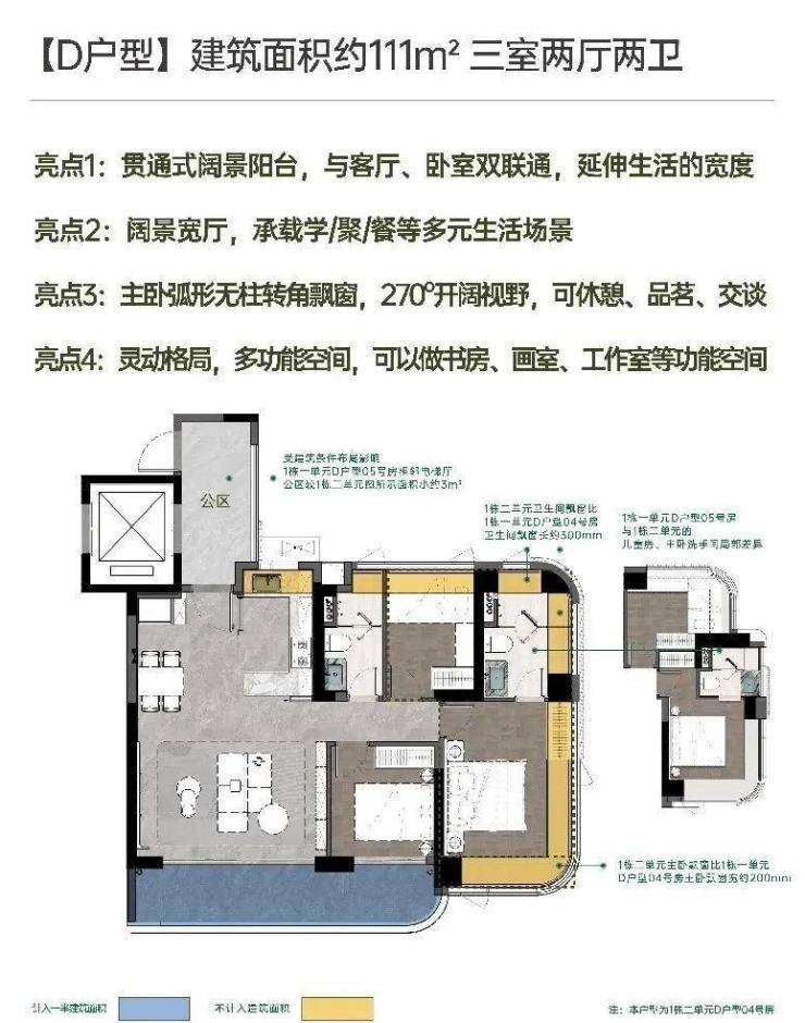 建面约111㎡宽厅阔景 灵动三房;