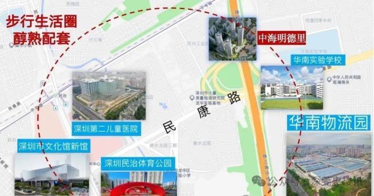 2)北站国际商务区,深圳六大总部基地之一,高投入打造国际化城市会客厅;项目距离深圳北站直线约2公里,所在民治街道是龙华目前发展的核心区域;明德里,于双区之中,在重点产业走廊之上,区域优势得天独