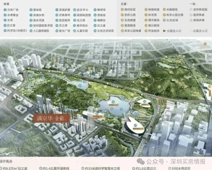 满京华金硕悦府,是新规楼盘100%得房率,科学公园+光明湖景观,且做到了户户朝南或南北通透格局,6号地铁线光明站距离仅400米。
