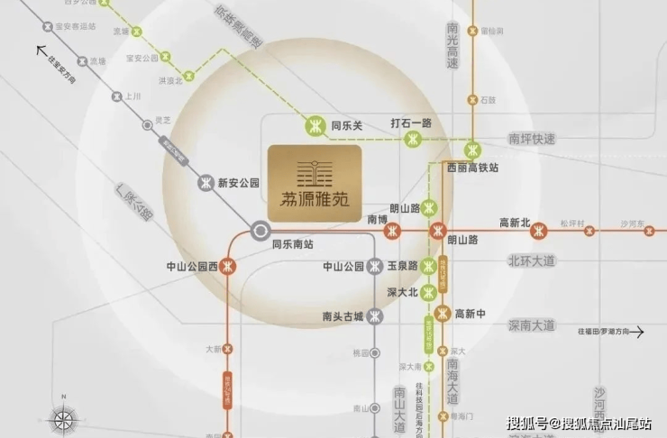 项目周边聚集深圳头部产业资源:西侧为科技园(腾讯、大疆等科技企业总部),东接前海金融中心,南靠蛇口自贸区,北邻留仙洞战略性新兴产业总部基地。区域内以高新技术、金融、总部经济为主导,吸引大量科技从业者及金融精英,形成高净值人群聚集效应。同乐片区未来或承接南山产业外溢,成为职住平衡的重要节点。