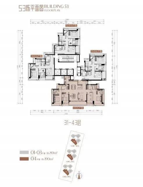 1️⃣58栋77套:89㎡3房,190㎡4房(5月推售)