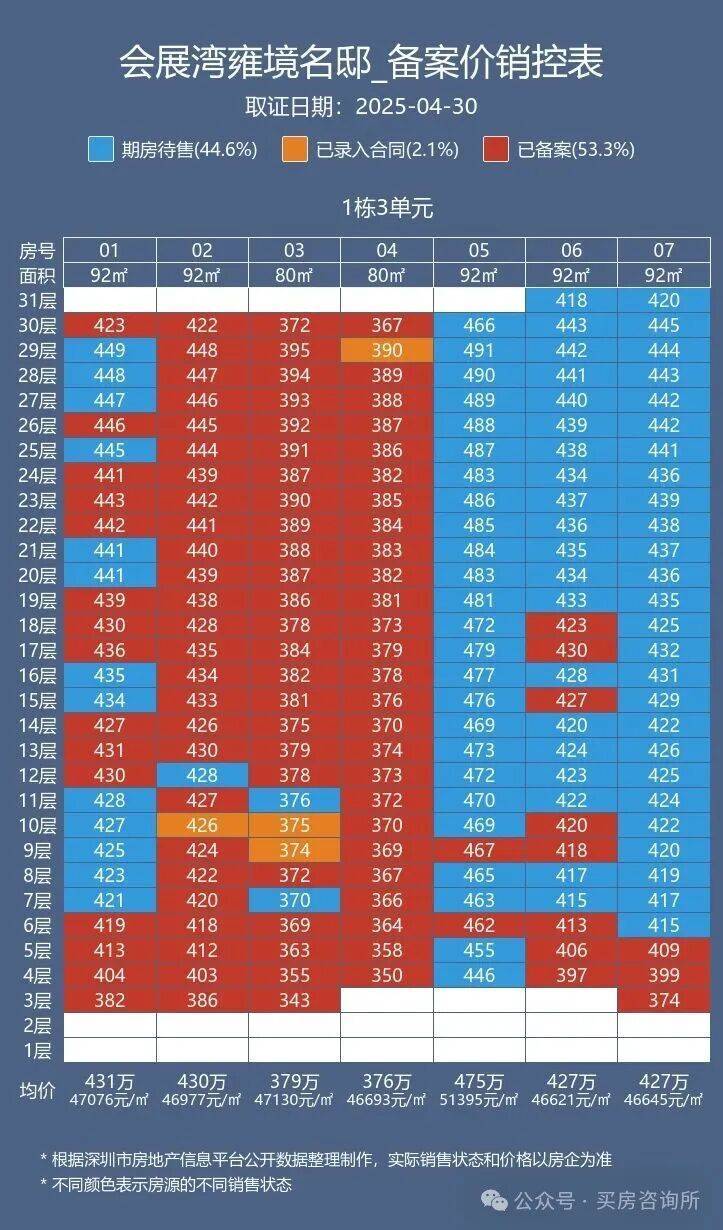 项目在2025年五一期间首推北地块1栋3单元,约80-92㎡3房,共195套,备案均价4.76万/㎡带精装。