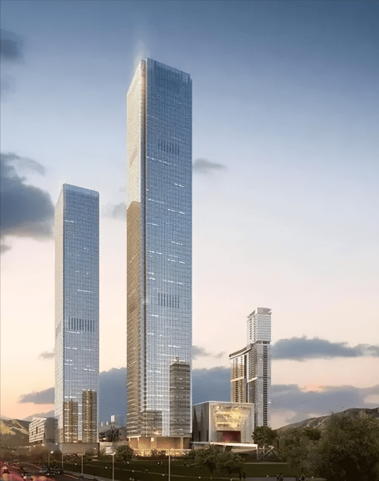 【深业上城公寓】包含两栋,4个单元,最高225米的公寓,目前还有一套450㎡的样板房在出售(7500万)和一套900㎡ 的顶层复式公寓出售。
