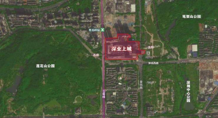 【深业上城公寓】位于莲花山公园与笔架山公园之间,有东西两座连廊与两座公园相连!