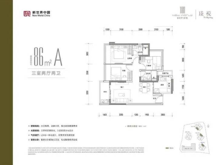 86㎡ 3房2卫 >>