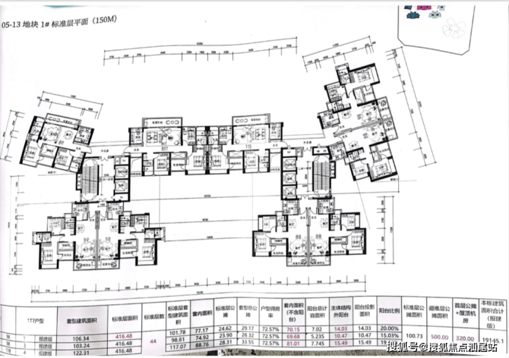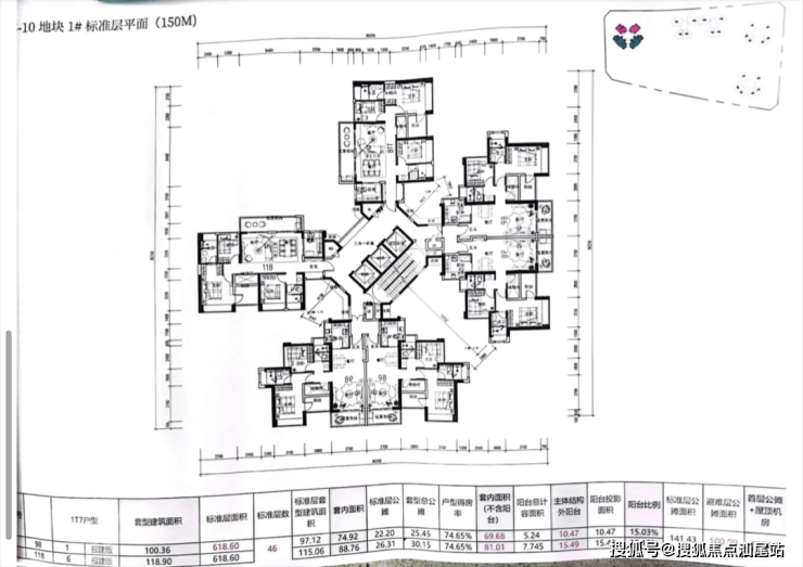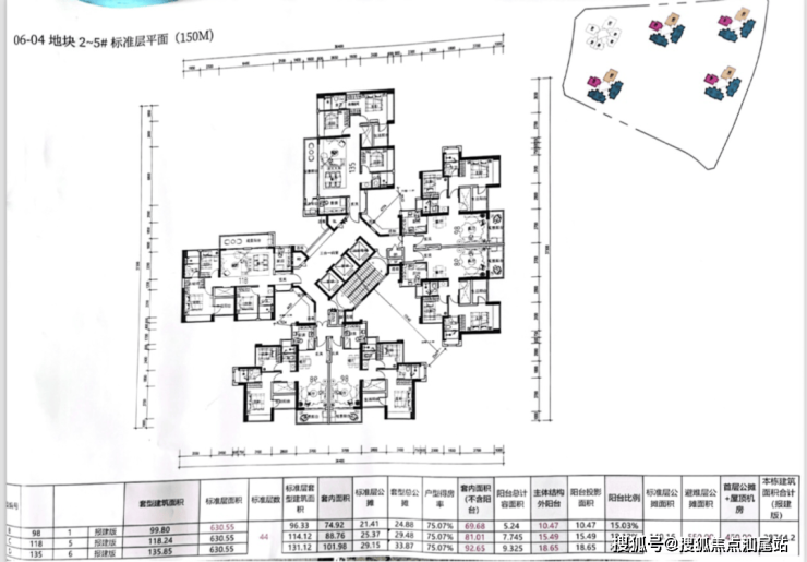 1#3梯6户,户型98平竖厅4套118平2套;